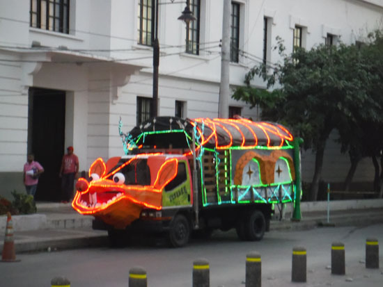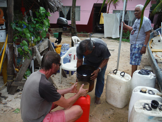 Kolumbialaista käsityötä. Siis meiltähän murtui pakoputken äänenvaimennin Kolumbiaan tullessa ja uutta ei löytynyt, mutta eräs hitsari teki uuden ja toi sen jouluaattona meille.