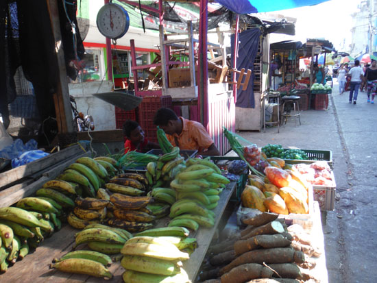 Isla Provenirin alapuolella oleva Nalunega, jossa yritimme käydä kaupassa. Löytyi meloonia ja vihreää paprikaa.
