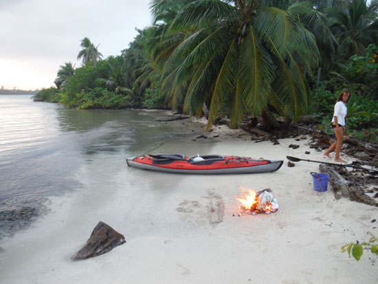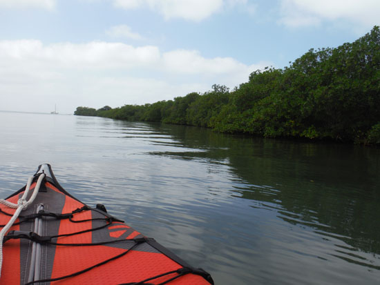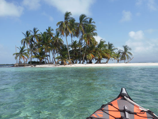 Siksi riuttojen ja saaren suoja tuntui lähes paratiisilta. Tässä kajakilla Mono Islandin suojaisessa lahdessa.