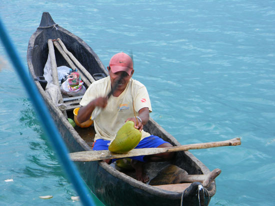 Snug Harbor: Arkin avasi ystävällisesti häneltä ostamamme kookoksen.