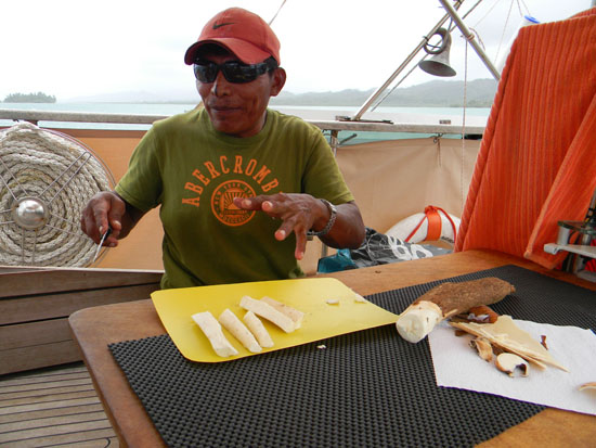 Seuraavana päivänä Arkin toi tilaamamme hedelmät ja jukkaa, jonka kuorimisen opetti meille.