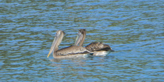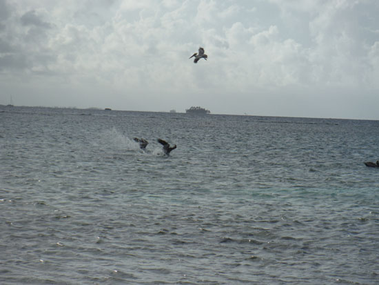 Pelikaanien syöksyjä ei väsynyt katselemaan. Parhaillaan niitä oli parikymmentäkin lintua yhtäaikaa.