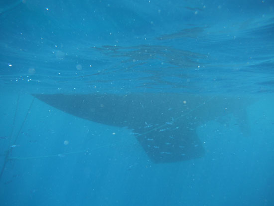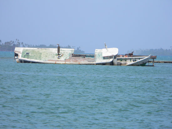 Hylkyjä lojui riutoilla eri puolilla San Blasia. Pari juuri riutalle ajanutta venettä näimme. Tämä hylky Narganan edustalla.
