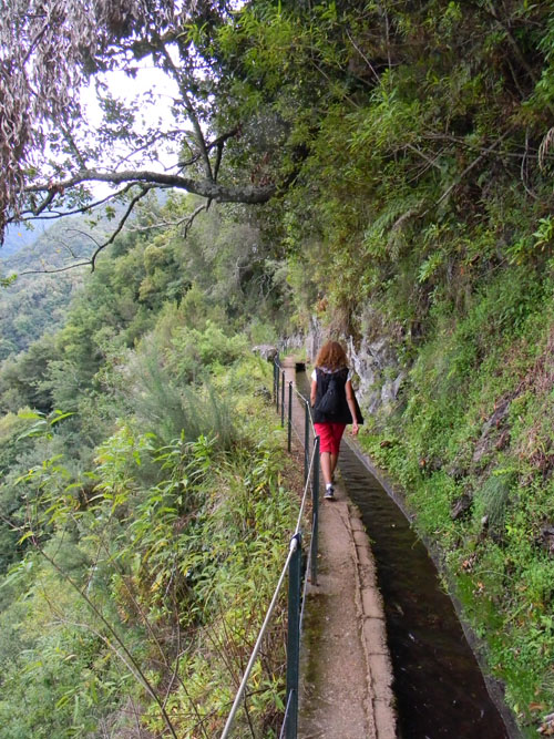 Madeira on täynnä vaellusreittejä levadojen eli kastelukanavien varrella. Yritämme vaeltamaan ylhäällä olevalle 25 Fontes-levadalle, vaikka sää muuttuukin sateiseksi ajaessamme ylöspäin. Parkkipaikalla sataa tihuttaa vähän ja urheina vedämme takit niskaan ja lähdemme tarpomaan polulle vievää asfalttitietä. Noin vartin kävelyn jälkeen alkaa sataa ja tuulla kunnolla, yhteistuumin päätämme, että tässä ei ole mitään järkeä. Olemme ihan tarpeeksi märkiä päästessämme takaisin autolle. Seuraavat levadat valitsemme vähän alempaa vuorten rinteiltä, jolloin sääkin on mukavampi. Vaeltamamme levadat kulkevat vuoren rinteillä puiden oksien alla, kävellessä tulee kummallinen olo, kuin olisimme vain kaksin koko vuorella.