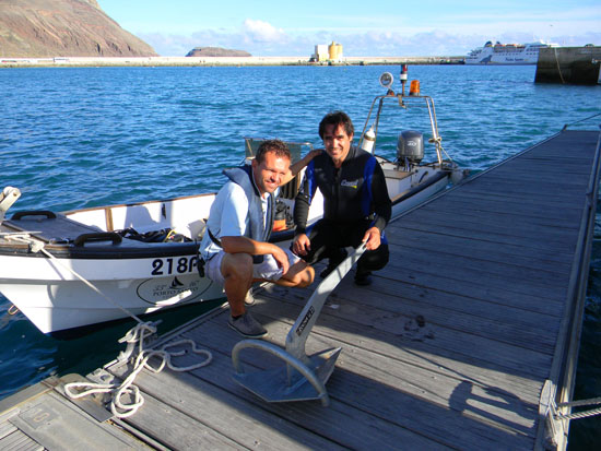 Parin tunnin jälkeen Nelson ilmestyy laiturille kertomaan, että ankkuri on löytynyt!! Olemme todella iloisia, olemme juuri säästäneet rahaa 550 € (sukelluspalkkio on vain muutaman kymmenen euroa). Kaiken lisäksi Nelson vaihtaa vielä meidän sinkit potkuriakseliin. Tätä satamaa ja sen ystävällistä ja auttavaa porukkaa voi todella kehua ja suositella!!:-)