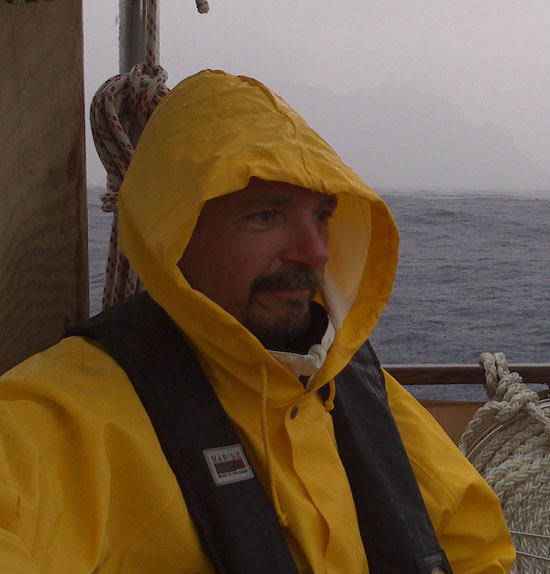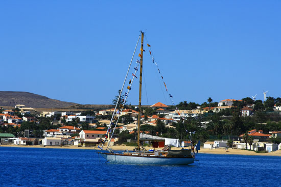Reilun viikon purjehduksen jälkeen selviämme kuitenkin Kap Verdelle. Sää on koko matkan ajan hyvä, myötätuulta 10-14 m/s ja aallotkin myötäisiä tai sivumyötäisiä. Puolimatkan paikkeilla aallot ovat todella ISOJA, noin 5-6 metrisiä (ei pelkkää aistiharhaa), mutta hienosti Panthera seilaa aallokossa parhaimmillaan 11 solmun vauhdilla. Autopilottiahan emme saa toimimaan koko matkan aikana. Pari päivää pystymme purjehtimaan tuuliperäsimen avulla korjaten käsin vain ääripäitä, kunnes tuuliperäsimen yhden kannakkeen hitsaus murtuu ja koko peräsin jouduttiin nostamaan ylös merestä, mikä ei keskellä yötä vellovassa meressä ole suinkaan mikään helppo tehtävä Juhalle. Viimeiset kolme vuorokautta vuorottelemme ruorissa ohjaten käsin, ei tarvitse miettiä muuta ajanvietettä, joko ohjaa tai nukkuu. Satelliittipuhelin irtisanoutuu ainoasta tehtävästään, joka sillä on, eli se ei saa enää yhteyttä satelliittiin. Meillä ei siis ole enää yhteydenpitovälinettä eikä säätietojen saanti mahdollisuutta. Sääennusteenhan me olimme ottaneet lähtiessä ja toteutuman näemme edessämme, suurin huolemme on läheisten huolestuminen, kun lupaamiamme viestejä ja sijainteja ei tulisikaan.