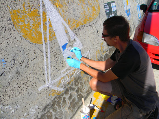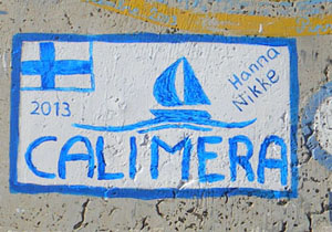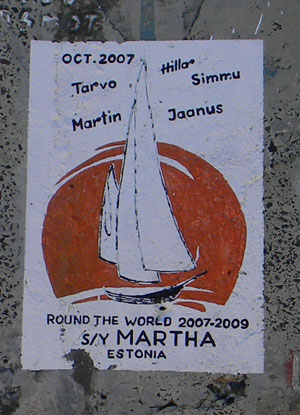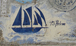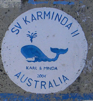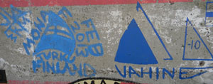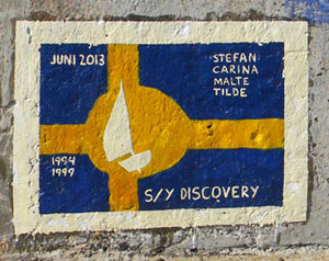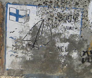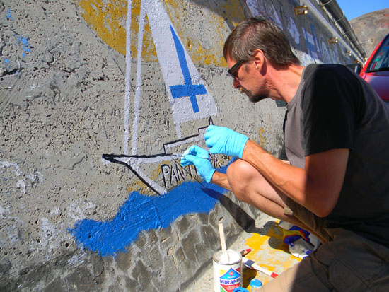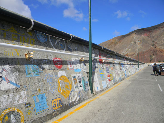 Lopulta päätämme jatkaa matkaa Madeiralle jo sinne lähteneiden Calimeran ja Homelessin perässä. Ennen lähtöä maalaamme vielä Pantheran logon sataman aallonmurtajan muuriin. Veneiden logojen maalaaminen on täällä ollut tapana kauan, muuri on täynnä maalauksia, sekä ajan patinoimia vanhoja kuvia että ihan uusia maalauksia tältä kesältä.