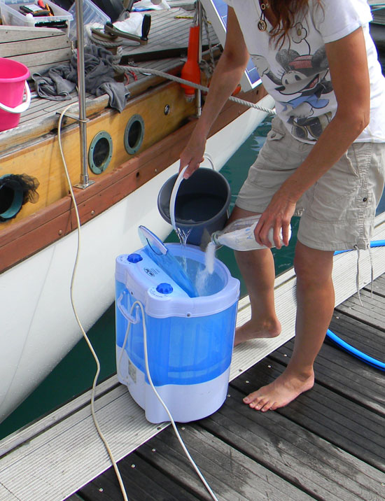 Sää on aurinkoinen ja lämmin, hyvä aika tehdä hommia laiturilla. Pyykinpesukoneen virittäminen laiturille saa monen uteliaan pysähtymään juttusille: mikä tuo on, onpas kätevä, mistä noita saa... Laiturilla on myös hyvä ommella laitasuojia ja pienentää liian isoa tuuliperäsimen lapaa, jokohan se kestäisi käyttöä hajottamatta kiinnikkeitä? Sää on sopiva myös piiiiiiitkällä hiekkarannalla rentoutumiseen ja kävelyyn, ja vihdoinkin myös uimiseen!