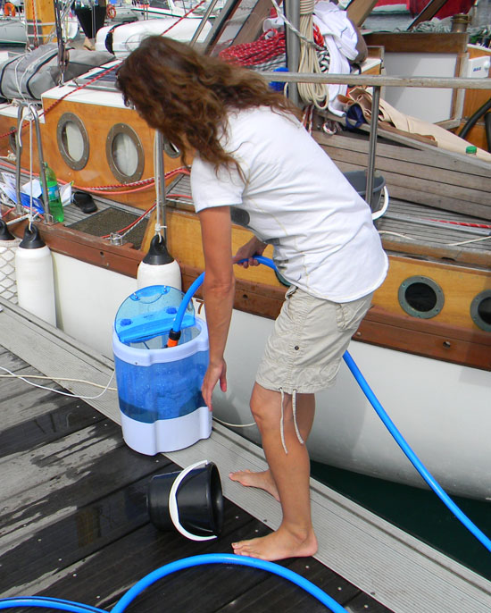 Varustelemme venettä pikkuhiljaa, veneen peräosaan on ilmestynyt sade/aurinkokatos, sisälle verhoja, kannelle ulkosuihku. Santa Cruzin kaikki neljä venetarvikekauppaa ovat tulleet tutuiksi erilaisten tarvikkeiden hankintapaikkoina. Yhden toukokuussa ostetun ja nyt oikosulkuun menneen akun tilalle on saatu hankittua uusi, Sipoon Akkukellari on luvannut palauttaa akusta maksetut rahat takaisin, koska maailmanlaajuisesta takuusta huolimatta ei akun vaihto onnistu täällä. Juhan aikaa on mennyt useampi päivä konehuoneessa mekaanista vesipumppua rakentaessa. Tässä satamassa monessa veneessä rakennellaan tai korjataan jotakin, kukaan ei valita metelistä.
