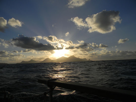 Seuraavana päivänä tuuli on kääntynyt myötäiseksi ja pääsemme lopulta purjehtimaan ilman moottorin pörinää. Purjeen säätöjä ei kovin usein tällä matkalla tarvita: isopurjeen nosto, preventterien tiukkaus (estävät vahinkojiipin eli puomin syöksymisen veneen väärälle puolelle), isopurjeen reivaus eli pienennys tuulen noustessa ja reivauksen purku tuulen heiketessä, halssin vaihto (purjeiden vaihto toiselle puolelle venettä, jotta kuljemmme oikeaan suuntaan). Ruori otetaan käsiohjaukselle vain purjemanöövereiden ajaksi ja satamaa lähestyttäessä. Tuuli pysyy mukavana koko loppumatkan eli 8-14 m/s, kunnes viimeisenä päivänä heikkenee niin, että loppumatkaksi otamme taas koneen purjeiden avuksi. Konetta joudutaan muutenkin käyttämään öisin pari tuntia sähkön riittämiseksi, autopilotti on aikamoinen virtasyöppö.