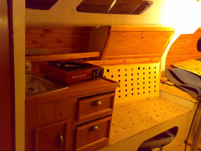 Talviprojekti 2007-2008 ![]() Kaiken kukkuraksi iski pakokauhu ettei ensi kesäksi ole venettä vesillä. Joten marraskuussa tuli ostettua Kaitzun kanssa kimppaan 8 metrinen lasikuiturunkoinen Arabesque 26 ja nyt on talvi rakennettu sen sisustaa, jotta saadaa vene vesille maalis-huhtikuun taitteessa. Sisusta oli riisuttu kokonaan, joten nyt on rimotettu kaikki kyljet, tehty kaapit ja sähköt, sekä pentteri. Vielä septitankki ja pikkuisen jotain loppu säätöjä vailla tuo projekti. Tuossa kuvat samasta kohtaa ennen ja jälkeen... patjat vielä puuttuu. |