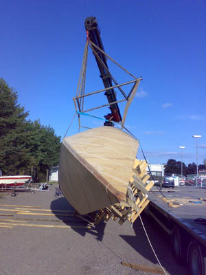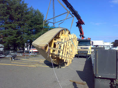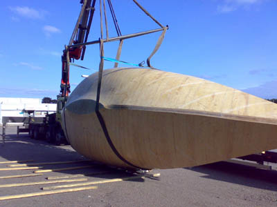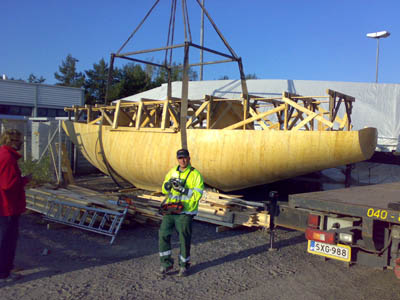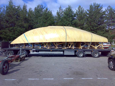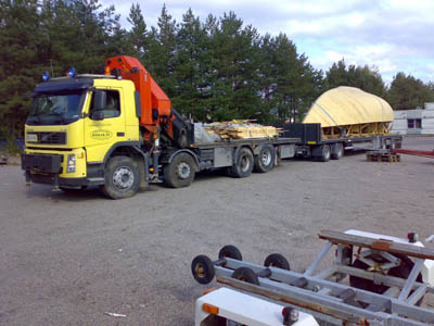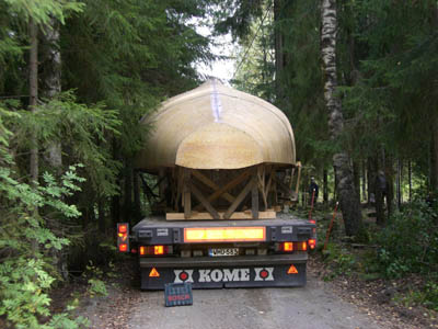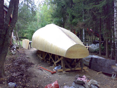 13.9.2008 Viimeinkin runko valmiina ja vapaana katoksesta. Kuidutettuna ja näin myös sään kestävänä. Kuljetusta odottamassa. Yksi vaihe on takana ja ehkä noin puolessa välissä koko projektissa... |