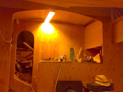 ![]() 20.11.2008 Ensimmäiset kalusteiden rungot alkaa olla paikoillaan sekä keulassa sekä salongissa. Rungot pyritään tekemään niin, että ne on tarvittaessa helppo purkaa osina pois. Jolloin tarvittavat huoltotoimet rungolle ja pinnoille on helppo tehdä. Kaikki sähköt putkitetaan runkojen taakse, jolloin johdotus helpottuu jälkikäteenkin. |