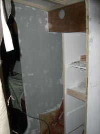 ![]() Myös pentteri alkaa olla paljolti kasassa. Kalusteiden rungot on paikoillaan ja kaapit sekä laatikot on maalattu sisältä. Ovet ja laatikoiden etulevyt puuttuu sekä työpöytien pinnat. Jopa muutama lista on saatu hellan taakse paikoilleen, jotka tosin tulevat jäämään kaapin takaseinäksi. Jääkaapin koneistokin on paikoilleen ruuvaamista vaille. Ja tuo komia Taylorin petrooli liesi on jo paraatipaikalla, kuin myös ensimmäinen aukeavaa mallia oleva ikkuna kulmassa. |
