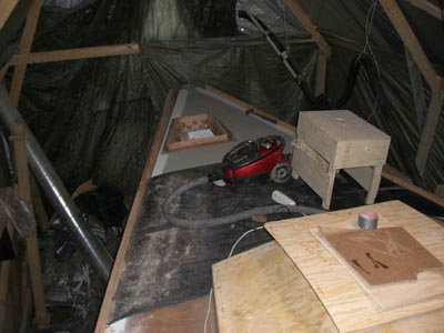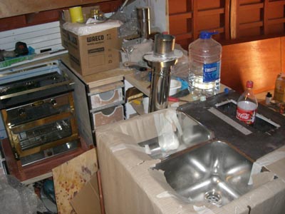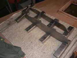 ![]() Tankkien mallit on paljolti tehty vanerista, vesitankit 100 ja 150 litraa teetetään rosterista, mutta polttoaine- ja septitankit tehdään itse laminoimalla. Myös rustiraudat, tai paremminkin niidet tuet alkaa pitkälti olla kiinni ruuvaamista vailla. Palikat teetettiin ja Kaizu on hitsannut niitä kasaan. |
